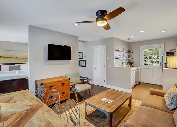 Perch On Perry By Lucky Savannah villa features an oven and a dishwasher provided in a fully-equipped kitchen. The café Fox & Fig is located a 5-minute stroll away and serves American dishes. Savannah/Hilton Head International airport can be reached in 22 minutes' drive.